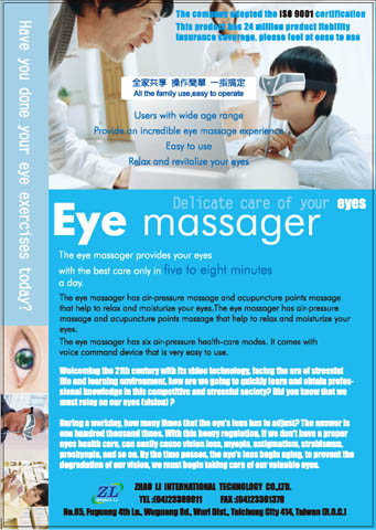 以自然、安全運用正負氣壓的按摩保健原理,推出適用於家庭化的眼部按摩機,